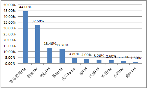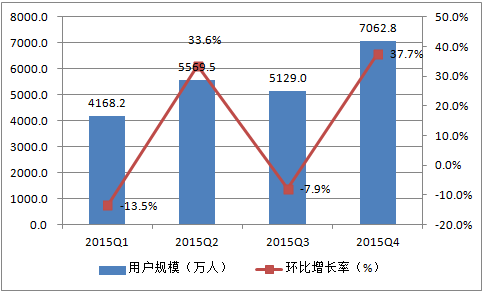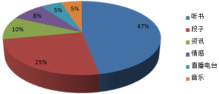 移動電臺市場用戶規模增長迅速,2015年每度活躍用戶明顯提高,尤其是第4季度,已達7062.8萬人,較第3季度增幅37.7%。2015年移動電臺在豐富音頻內容的同時,集廣播電臺、音樂、新聞、有聲小說、相聲、評書、搞笑段子、教育培訓等內容,為避免產品同質化,加強用戶的參與度,開始推動PUGC模式,降低了電臺主播門檻,用戶可以自主錄制音頻內容,增強了用戶互動體驗。