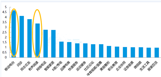 汽車工具相關性最強的領域為:移動電臺、有聲閱讀、K歌秀場、品牌電商,服裝百貨等領域,由此相關性可以看出,汽車工具領域的用戶多以年輕人為主,他們偏愛網購類應用,在日常生活中,移動電臺、體育視頻、K歌秀場、等視聽類的應用也是必不可少的娛樂項目。 電臺和有聲閱讀與其他娛樂應用(音樂、閱讀、游戲、視頻等)在用戶量級上還有一定差距,卻是與車主關聯度最高的應用。