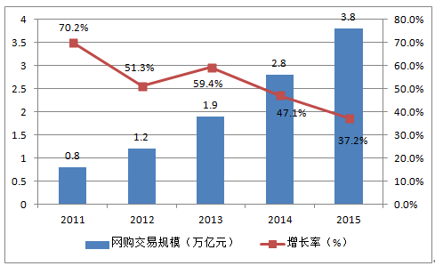 2011-2015年中國網(wǎng)絡(luò)購物交易規(guī)模