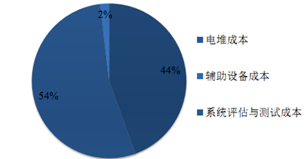一個燃料電池動力系統的成本比例主要由下表所示(未包含儲氫罐),電池堆的成本占到整個動力系統超過50%,是最關鍵的核心部件。