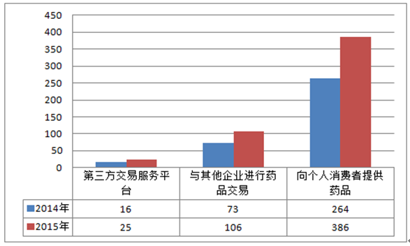 2014-2015年擁有互聯網藥品交易服務資格的企業數量(家)