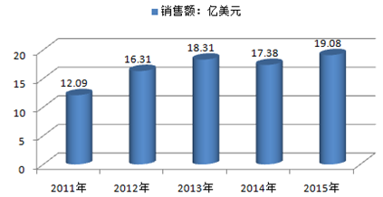 2011-2015年全球輝瑞肺炎疫苗 Prevnar銷售額