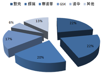顯示:在2015年GSK與諾華資產置換之前,全球疫苗巨頭葛蘭素史克、賽諾菲巴斯德、默沙東、輝瑞和諾華的銷售額占全球總銷售額的85%左右。其中GSK、賽諾菲、默沙東的年銷售額均在50億美元以上。