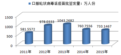 2011-2015年口服輪狀病毒活疫苗批簽發情況