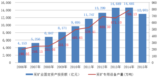 2006-2015年采礦專用設(shè)備及采礦業(yè)固定資產(chǎn)投資