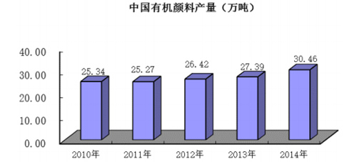 我國已成為世界上最重要的有機顏料生產國,2014 年我國有機顏料制造業(yè)全行業(yè)的產量達到 30.46 萬噸, 產量位居世界第一。 我國有機顏料行業(yè)市場需求量 2012 年約為 12 萬噸, 2013年以來每年保持 8%左右增長速度。中國生產的有機顏料用于出口的比例超過60%。