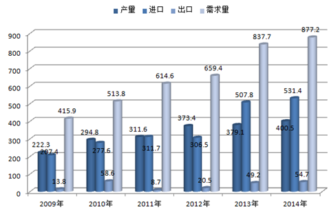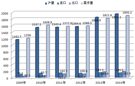 2009-2014年中國汽車自動變速器供求平衡統計(萬臺)
