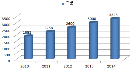 2010-2014中國汽車轉向行業產量(萬套)