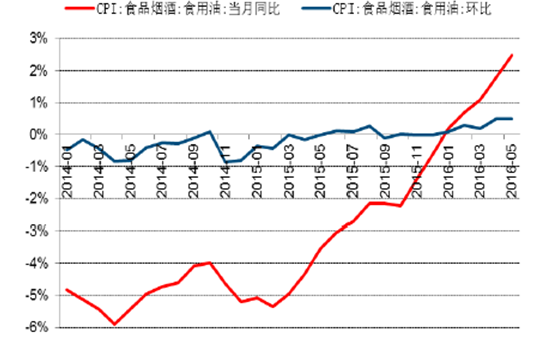 2014-2016年中國食用油價格同比及環比