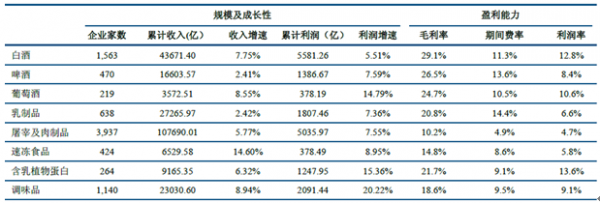 食品飲料各子行業產量表