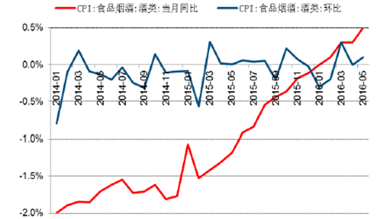 2014-2016年酒類價格同比及環比