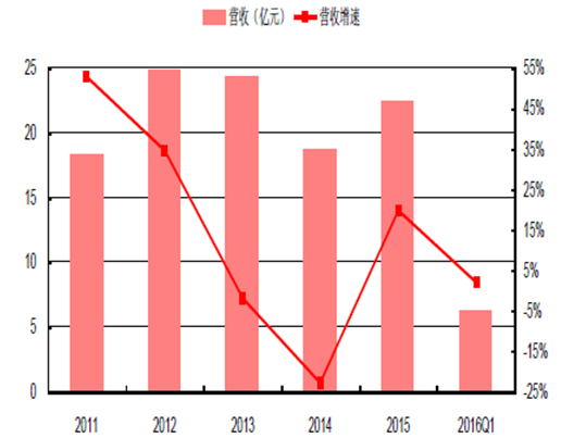 2011-2016年西王食品營業收入(億元)