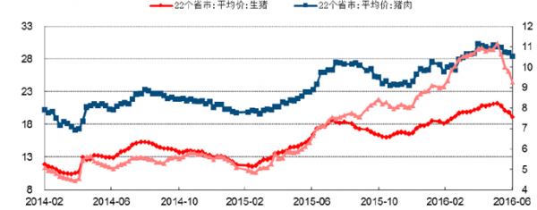 2014-2016年豬肉和牛肉價格同比及環比