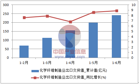 2016年1-6月中國化學纖維制造業出口交貨值統計數據