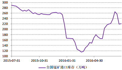 核心提示:2016 年上半年,進口錳礦價格波動較大,截止到 7 月初的時候,前期 已經累計了一段時間的下跌態勢,且今年的錳礦庫存相比往年處于較低的位 置,3 月份一度降低至 110 萬噸的歷史低位。進口錳礦價格近期迅速拉漲 今年錳礦港口庫存偏低2016 年上半年,進口錳礦價格波動較大,截止到 7 月初的時候,前期 已經累計了一段時間的下跌態勢,且今年的錳礦庫存相比往年處于較低的位 置,3 月份一度降低至 110 萬噸的歷史低位。