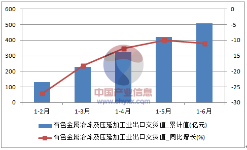 核心提示:智研咨詢(xún)數(shù)據(jù)顯示:2016年6月中國(guó)有色金屬冶煉及壓延加工業(yè)出口交貨值89.1億元,同比下降8.3%;2016年1-6月中國(guó)有色金屬冶煉及壓延加工業(yè)出口交貨值506.9億元,同比下降11%。2016年1-6月中國(guó)有色金屬冶煉及壓延加工業(yè)出口中經(jīng)先略數(shù)據(jù)中心數(shù)據(jù)顯示:2016年6月中國(guó)有色金屬冶煉及壓延加工業(yè)出口交貨值89.1億元,同比下降8.3%;2016年1-6月中國(guó)有色金屬冶煉及壓延加工業(yè)出口交貨值506.9億元,同比下降11%。