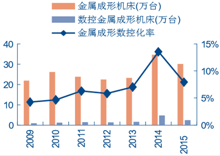 中國金屬成型數控機床產量及數控化率