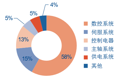據統計,當前中國數控機床市場約 40 萬臺超千億規模,其中機床電氣市場近 400 億, 數控系統和伺服系統是機床電氣的主要部分。常規情況下每臺數控機床會使用一臺 CNC 專 用控制器作為控制部件,一臺 PLC 通用控制器作主軸控制,還有 2~3 套伺服系統完成切削 等精確位置控制。在這些核心部件的基礎上會產生一系列配套、工程設計等系統集成業務。