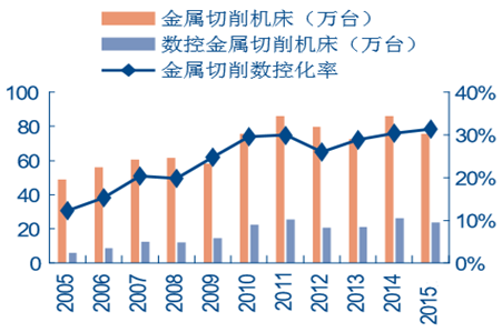 中國金屬切割數控機床產量及數控化率