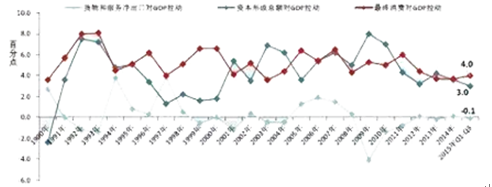 消費正逐步成為拉動經濟增長的核心動力。2015年前三季度,最終消費對國內生產總值的貢獻達到58.4%,比2014年底大幅提高8.2個百分點,拉動GDP增長4個百分點,高于資本形成總額和凈出口對GDP的拉動。十三五規劃建議稿中提出,要發揮消費對增長的基礎作用,著力擴大居民消費,引導消費朝著智能、綠色、健康、安全方向轉變,以擴大服務消費為重點帶動消費結構升級。未來隨著居民消費能力進一步釋放、消費結構轉型升級,消費對經濟增長的貢獻將進一步加大。