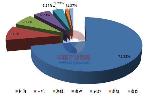 目前,我國口罩產業品牌數量較多,具有影響力的口罩品牌企業很少。行業企業品牌市場占有率較低,前三企業品牌占有率沒超過25%。國內主要企業和品牌:龍頭股份(三槍、海螺)天津泰達(泰達)、上海美科無紡布制品有限公司(宜舒,吉可,港凱)東莞市容鑫防靜電技術有限公司(容鑫)等。