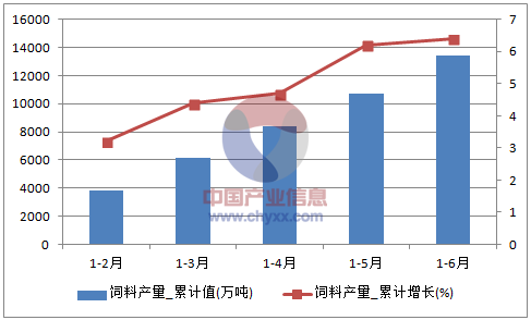 核心提示:智研咨詢數據顯示:2016年6月中國飼料產量為2576.9萬噸,同比增長5.9%。2016年1-6月止累計中國飼料產量13450.8萬噸,同比增長6.4%。2016年1-6月全國飼料產量數據表如下表所示:2016年1-6月全國飼料產量統計表中經先略數據中心數據顯示:2016年6月中國飼料產量為2576.9萬噸,同比增長5.9%。2016年1-6月止累計中國飼料產量13450.8萬噸,同比增長6.4%。2016年1-6月全國飼料產量數據表如下表所示: