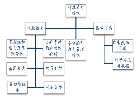 隨著信息技術在醫學領域應用的發展,除了傳統醫療領域大量診斷、影像圖像、病理分析等數據在橫向個體和縱向時間跨度上的大幅積累,生命科學研究領域也產生了包括基因組學、轉錄組學、蛋白質組學、代謝組學等等“生物大數據”。2012年國際千人基因組計劃1092個人類基因數據和人類遺傳突變圖譜發表,英國首相卡梅倫也在2013年宣布實施十萬人基因組計劃,隨即腫瘤基因圖譜(TCGA)、DNA元件百科全書(ENCODE)、以及人類蛋白質組計劃(HPP)也將開始或在進行中。目前發達國家和地區對生物大數據的管理均采用國家級的數據中心模式,包括美國國家生物技術信息中心(NCBI)、日本DNA數據庫(DDBJ)和歐洲生物信息研究所(EBI)。