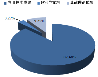 2015年度登記的科技成果中,應用技術成果48363項,基礎理論成果5115項,軟科學成果1806項。