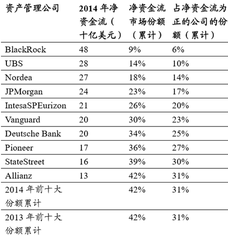 美國市場共同基金資金流的前十大資產管理公司