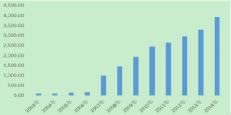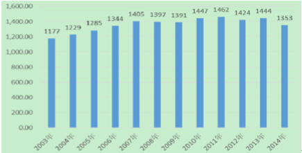 2003 年-2014 年工業用水量(單位:億立方米)