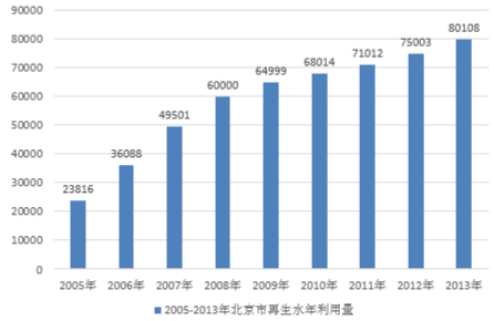 2005-2013 年北京市再生水年利用量 單位:萬立方米