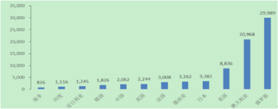 2014 年部分國家人均可再生內陸淡水資源
