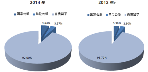 2012-2014年度我國出國留學人員構成對比(單位:%)