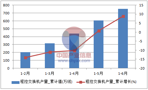 核心提示:智研咨詢數據顯示:2016年6月中國程控交換機產量為145.5萬線,同比增長69%。2016年1-6月止累計中國程控交換機產量752.5萬線,同比增長8.9%。2016年1-6月全國程控交換機產量數據表如下表所示:2016年1-6月全國程控中經先略數據中心數據顯示:2016年6月中國程控交換機產量為145.5萬線,同比增長69%。2016年1-6月止累計中國程控交換機產量752.5萬線,同比增長8.9%。2016年1-6月全國程控交換機產量數據表如下表所示: