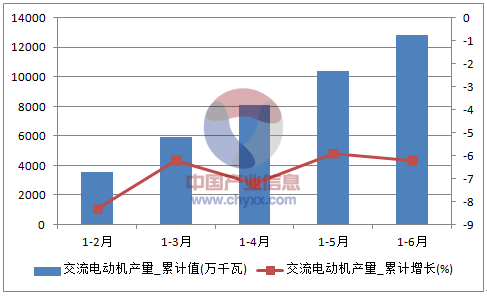 核心提示:智研咨詢數據顯示:2016年6月中國交流電動機產量為2462.9萬千瓦,同比下降5%。2016年1-6月止累計中國交流電動機產量12852.9萬千瓦,同比下降6.2%。2016年1-6月全國交流電動機產量數據表如下表所示:2016年1-6月中經先略數據中心數據顯示:2016年6月中國交流電動機產量為2462.9萬千瓦,同比下降5%。2016年1-6月止累計中國交流電動機產量12852.9萬千瓦,同比下降6.2%。2016年1-6月全國交流電動機產量數據表如下表所示: