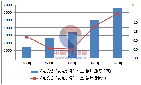 2016年1-6月全國發電機組(發電設備)產量統計圖