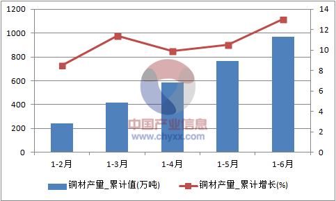 2016年1-6月全國銅材產(chǎn)量統(tǒng)計圖