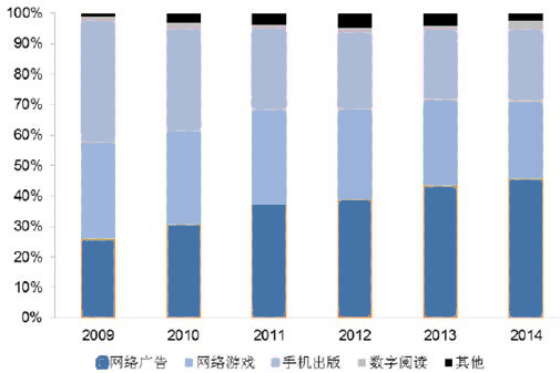 2009~2014年全國數字出版營業收入構成