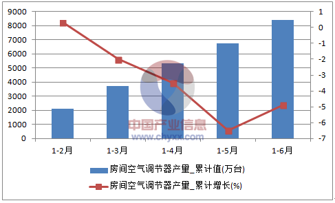 2016年1-6月全國(guó)房間空氣調(diào)節(jié)器產(chǎn)量統(tǒng)計(jì)圖