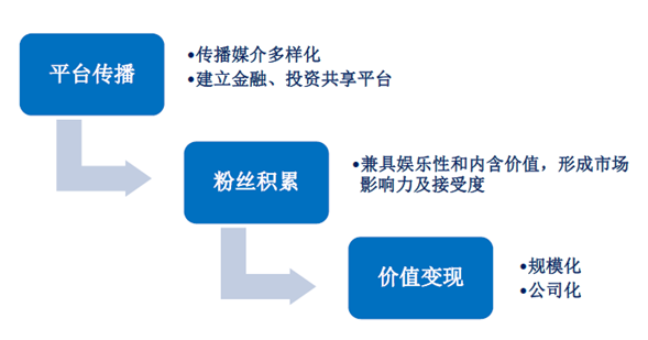 核心提示:網紅,是網絡紅人的簡稱,代表了一個在現實或網絡生活中受到網民關注而走紅的群體。從娛樂八卦到金融經濟,甚至在政壇也掀起“網紅風”,美國總統候選人川普,以其出位的言論、不羈的發型在網絡上迅速受到追捧,形勢一片大好。 金網紅,是網絡紅人的簡稱,代表了一個在現實或網絡生活中受到網民關注而走紅的群體。從娛樂八卦到金融經濟,甚至在政壇也掀起“網紅風”,美國總統候選人川普,以其出位的言論、不羈的發型在網絡上迅速受到追捧,形勢一片大好。金融網紅們的人氣為其背后的相關商業機構帶去了流量與價值。投資圈評價一個網紅的價值,首先看粉絲情況,其次是曝光率,第三是內容。據公開資料,估值過億元的網紅當中,財經圈網紅獨占三席。這幾個金融網紅自身是嚴謹的研究者,同時敢于表達自己觀點。正是他們基于嚴密邏輯的靠譜觀點及對市場的準確判斷,吸引眾多追隨者,形成了當今時代金融網紅的核心競爭力。網紅的龐大粉絲群只要存在一定轉化為客戶的幾率,其帶來的經濟效益就不可估量。中國估值過億元的網紅中,財經圈占三席網紅名稱簡介微博粉絲數估值南派三叔盜墓文學掌門人1133萬15億羅振宇《羅輯思維》主講人101萬13.2億李大霄英達證券分析師230萬10億楊德龍前海開源基金執行總經理7萬5億葉檀知名的財經評論家、財經專欄作家164萬5億papi醬網絡視頻紅人1635萬3億同道大叔星座娛樂自媒體1084萬2億馬睿關愛八卦成長協會會長418萬1億金融網紅的分類有多個維度:按內容和風格分,有八卦類、資訊類、財經評論類等;按出身分,有投資大師、專家學者、草根名人等。縱觀網紅生態圈,金融網紅與傳統網紅的區別主要有三點:一是專業性,金融網紅需要具備一定專業素質,對金融市場有準確判斷,在充分發揮網絡的娛樂精神同時,提供給投資者有價值的信息;二是合規性,由于行業特性,金融網紅在公眾平臺上展業需要符合一定的規范,維持講解和分析的合規性和客觀性,守住對公眾負責的底線;三是變現方式存在差異,目前傳統網紅的主要變現方式是電商、廣告、打賞、付費服務、線下活動,收益直接屬于個人。而金融網紅的變現基于嚴肅的商業模式,積累人氣為公司帶去流量和價值,通常與金融公司合作在公司層面通過成熟的商業模式進行價值兌現。一、金融網紅模式:大平臺+大流量+強IP由于證券和資產管理公司的服務差異化還不足夠大,因而依靠具有強烈個人色彩的金融網紅IP更容易吸引和聚集粉絲客戶。我們可以大致可以描述金融網紅的主要模式為:通過一定渠道或平臺積累人氣,形成市場影響力,通過內容價值獲得認可,形成觀點接受度,最后將粉絲引流至商業公司,在線下將粉絲價值變現,即大平臺+大流量+強IP。金融網紅的主要發展模式