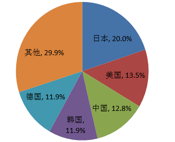 2014 年全球工業機器人保有量分布情況