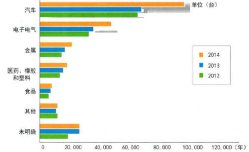 2012-2014 年全球工業機器人應用行業分布