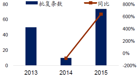 2013-2015 發(fā)改委批復(fù)軌交項(xiàng)目(條數(shù))