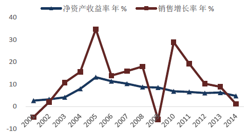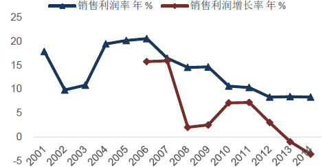 2001-2014年石油石化工業銷售利潤率情況