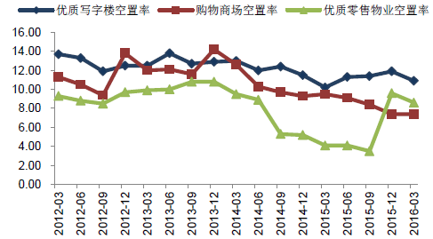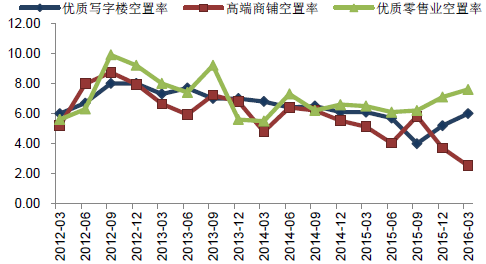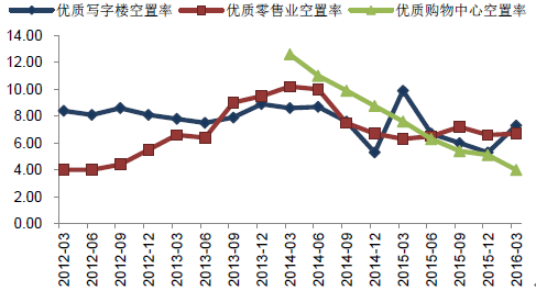 北京主要商業(yè)地產(chǎn)空置率%(季度)