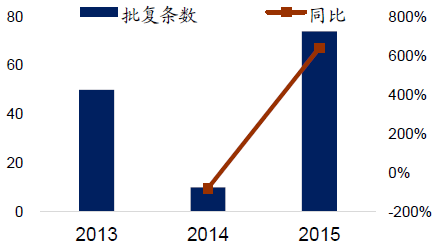 2013-2015 發(fā)改委批復(fù)軌交項目(條數(shù))