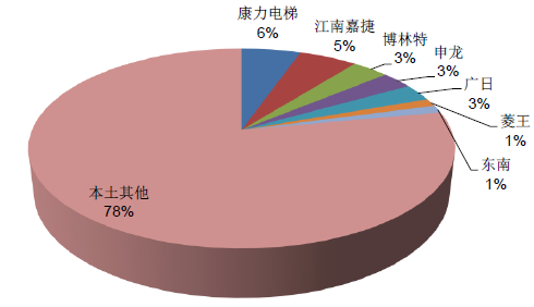 2015年我國電梯市場(chǎng)本土品牌市場(chǎng)份額
