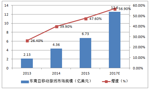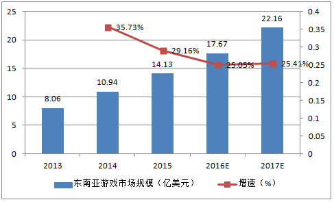 2013-2017年東南亞游戲市場規(guī)模及增速