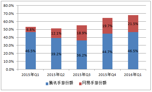 2015-2016年騰訊、網(wǎng)易手游市場規(guī)模