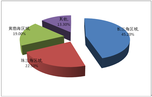 目前,我國汽車沖壓件生產(chǎn)企業(yè)主要分布在珠三角、長三角、黃渤海區(qū)域。2015年我國汽車沖壓件行業(yè)產(chǎn)量約4280萬噸,產(chǎn)量區(qū)域分布如下圖所示: